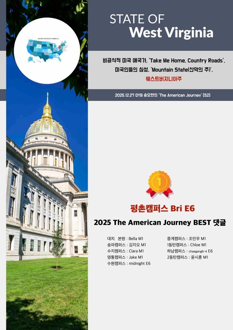 2025.12.31 DYB 송오현의 ‘The American Journey’ [52] 베스트댓글 :‘Take Me Home, Country Roads’, 웨스트버지니아주