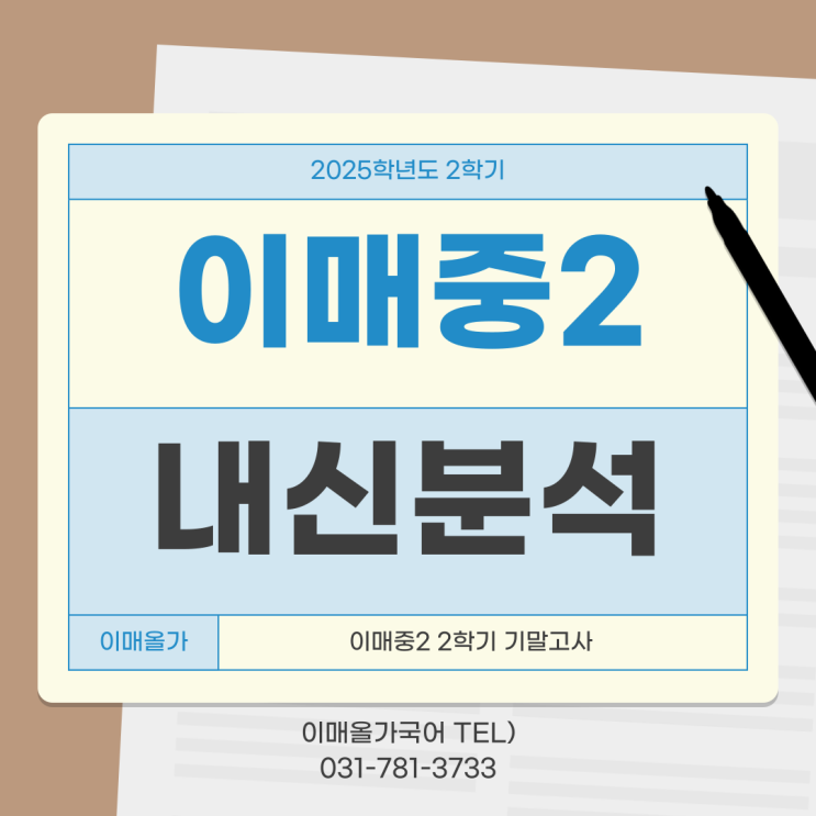 안녕하세요, 이매올가 국어입니다! 이번 2학기 기말고사는 시험 첫날이었는데요, 첫날부터 국어가 어렵게 출제되었다는 학생들의 후기가 쏟아졌던! 심도 있는 국어 공부에 대한 경각심을 다시 한번 일깨워준 시험이었습니다. 이번 시험은 설명 방법과 문법 개념을 정확히 이해한 학생과 그렇지 않은 학생 간의 점수 차가 비교적 뚜렷하게 나타났을 시험입니다. 그럼 이매중 2학년 학생들이 치른 2025학년도 2학기 기말고사 국어 시험을 분석해보겠습니다~~ 시험의 주요 특징 ✅ 설명문 단원 이 문제가 어려웠을 것으로 보이는 이유 이 문제는 그냥 글을 읽고 느낌으로 푸는 문제가 아니라, 설명 방법 단원에서 배운 개념을 정확히 알고....... <img src="https://blogthumb.pstatic.net/MjAyNTEyMTNfMjkz/MDAxNzY1NjA5NjE4OTY3.h0nPI9EUzy68vO653qslGMT0saE2cJyTzUCnr7lsXZsg.OsvDelo1RqnhamRz_KM6bTrdgvXXJxR_p8wiuBv1FLUg.PNG/001.png?type=s3" />