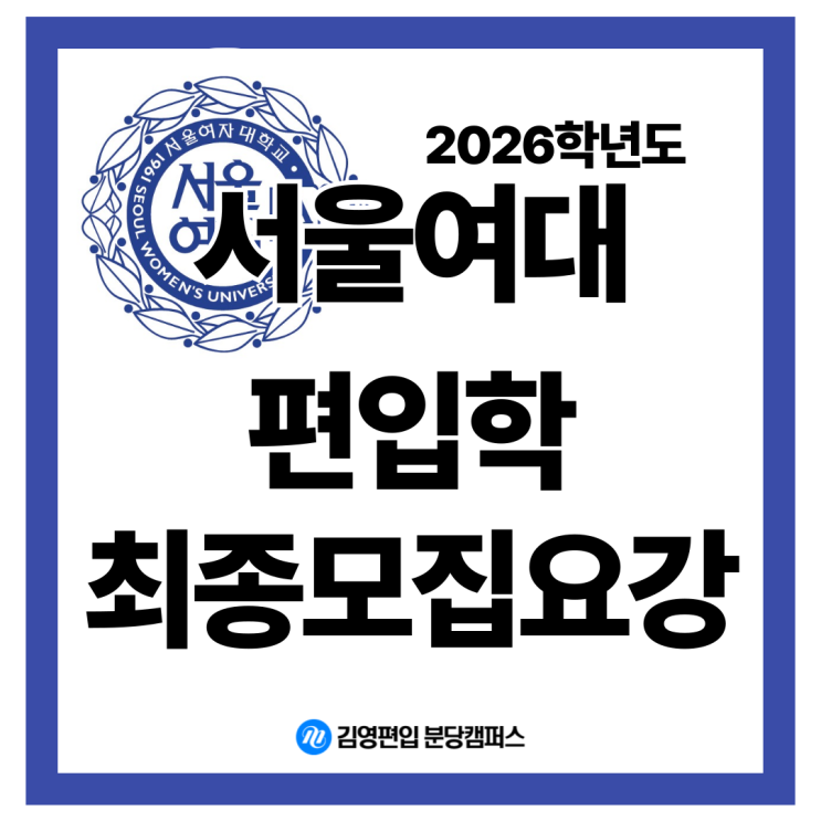[성남·용인편입학원ㅣ김영편입분당] 2026학년도 서울여자대학교 편입학 최종모집요강 안내