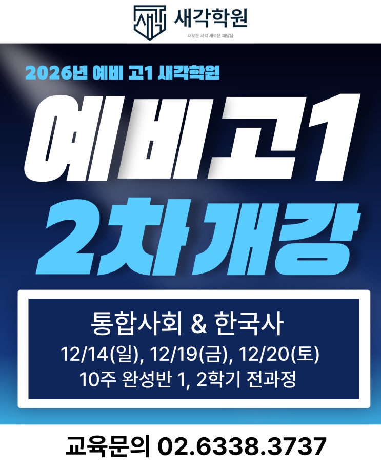 저현고 내신은 시작부터 남다르게! 2026 다른영어 예비고1, 예비고2반이 다가오는 1월 5일부터 정규 개강을 앞두고 있습니다. * 모집은 선착순으로 마감될 예정입니다 :) 레벨테스트 및 기타 문의는 (010-2578-0942)로 부탁 드립니다! <img src="https://blogthumb.pstatic.net/MjAyNTEyMDlfMjMg/MDAxNzY1Mjc0MzA1MzM4.-phEfYdwvRJ1WPFHDRd4V410fMA1U3waTRaWq0HQ8lgg.pLnZ16DSM2e0uFAmtcsV-ghaWneCmeFyTLCPFU99E0Eg.PNG/%BF%B9%BA%F1%B0%ED1_2_%B0%B3%B0%AD.png?type=s3" />