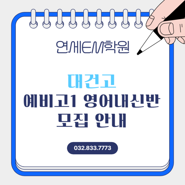 대건고 영어학원 대건고등학교 영어내신 대건고 영어학원 대건고등학교 영어내신 대건고 1학년 내신 영어 대비반 신규 개설안내 안녕하십니까, 송도 1공구 학원가에 위치한, 연세 EM 어학원입니다. 26학년도 대건고에 입학할 "예비 고1 학생"을 대상으로 신규 영어내신반을 모집합니다. CHECK POINT : 예비고 체크리스트 1) 학원을 다니긴 하는데 성적이 크게 오르지 않는 학생 2) 자기주도학습 및 공부 습관을 새롭게 정립하고 싶은 학생 3) 강의식이 아닌 코칭으로 맞춤 지도가 필요한 학생 4) 중 등 어법부터 다시 시작하고 싶은 학생 5) 고등학교 영어에 대해 막연한 부담을 가진 학생 상단의 체크리스트를 보고 3개 이상 해당되거....... <img src="https://blogthumb.pstatic.net/MjAyNTEyMTBfMjMy/MDAxNzY1MzUwMjEzMTMz.rHYANAbxZXAYrclLofY3UTK2jdA3m5aRC4NnyZWoAMEg.3IWoDKZ69ZKrx256O80dnbZKkk7vAY5jXdMU2ZSu6kwg.PNG/%B4%EB%B0%C7%B0%ED_%BF%B5%BE%EE%C7%D0%BF%F8.png?type=s3" />