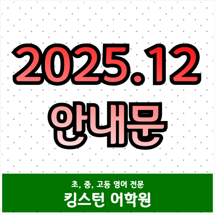 [킹스턴 어학원] [개신동 영어학원] [가경동 영어학원] 2025년 12월 안내문
