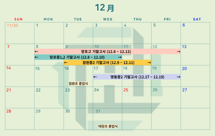 [영통/망포 하이포스학원] 12월 스케줄 / 시간표