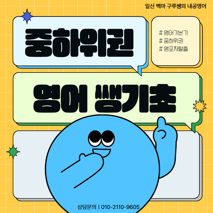 안녕하세요! 일산 백마학원가에 위치한 중고등 내신 수능 영어학원, 구루쌤의 내공영어입니다. 오늘은 저희 구루쌤의 내공영어만의 쌩기초정리 코스를 설명해드리려 합니다. 학원에 등록하기 전 상담과 테스트를 하다보면 영어 공부를 처음 시작해보는 학생도 있고, 아예 영어라는 과목에 있어 두려움을 느끼면서 영어 학습을 그동안 회피해버린 학생들이 많습니다. 더 이상 영어 공부에 대한 두려움과 걱정 NO! 여러분을 위한 영어 쌩기초 정리 쌩기초정리는 영어 기본기가 없는 하위권 학생부터 여태껏 영어공부를 해본 적이 없는 최하위 학생들을 위해 본격적인 정규반 직강에 들어가기 전 학습하는 단기과정이라고 보시면 됩니다. 흔히 노베....... <img src="https://blogthumb.pstatic.net/MjAyNTEyMDRfOTkg/MDAxNzY0ODQ3MTkxNDg4.hAcw-neZldMVGqGdjn5tdYIHAM1AmA3sk5mdCM5csR8g.6SI3kILxt4BcMwTLyVjSQzQZvFCh9oN_E5fiG6f3IV4g.PNG/image.png?type=s3" />