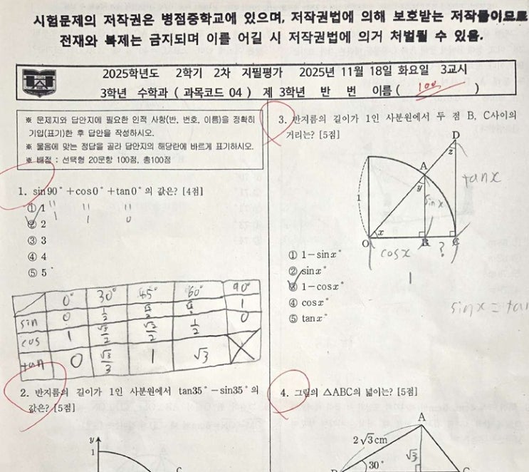 병점중 3학년 기말 수학 100점!, 성적상승은 클레버루트 수학 학원!