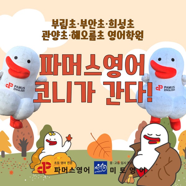 안녕하세요, 파머스영어입니다 :) 안양 초등영어 전문 파머스영어에는 부안초, 부림초, 희성초, 관양초, 해오름초 친구들이 함께하고 있어요. 현재 1 공작럭키 본.원, 2 관양캠퍼스 이렇게 두 곳에서 아이들의 수준과 성향에 맞춘 체계적인 초등 영어교육을 진행하고 있습니다. ▼초등영어 파머스 궁금하다면 클릭!▼ 파머스영어는 매달 개강하는 방식이 아니라 2026년 1월 개강을 기다려주시는 학부모님들이 많아 개강 전 궁금하신 사항들을 미리 안내해드리려 12월에 학부모 설명회를 준비했습니다. 설명회 홍보차 학교 앞에 다녀왔는데요, 파머스영어의 마스코트 코니도 함께했습니다! 아이들이 멀리서도 코니를 보고 신나서 달려와서 환하게....... <img src="https://blogthumb.pstatic.net/MjAyNTEyMDhfMjMg/MDAxNzY1MTc2OTg3MDI4.A28ujNBz9fNmqRHLHIjEgLWT1S4qLkGcYP1yErjylMsg.ZZRTZmR-VgwN5dbuB8eZSwN0LX47vdMeBsM9At_Ez3wg.JPEG/%BA%CE%B8%B2%C3%CA%BF%B5%BE%EE%C7%D0%BF%F8_%BA%CE%BE%C8%C3%CA%BF%B5%BE%EE%C7%D0%BF%F8_%B0%FC%BE%E7%C3%CA%BF%B5%BE%EE.jpg?type=s3" />