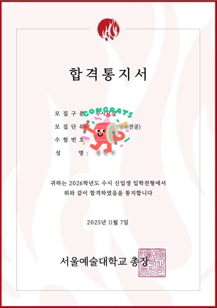 <서울예술대학교 연극연출과 합격 면접후기> 저는 연극연출 입시에서 서울예대 최종 합격을 하게 된 정0 0 입니다, 서울예술대학교 연극연출과 입시는 단순히 실기 능력만을 평가하는 것이 아니라, 지원자의 태도와 진정성을 보는 과정이라는 것을 면접을 통해 뼈저리게 느낄 수 있었습니다. 그 과정에서 경험한 면접 후기를 공유하고자 합니다. 1. 면접 준비 과정 입시를 앞두고 가장 신경 쓴 부분은 작품 분석과 연출 의도 설명이었습니다. 교수님들이 단순히 “이 학생이 연극을 좋아하는가”를 보는 것이 아니라, 얼마나 깊이 있게 작품을 해석하고 무대화할 수 있는가를 확인한다는 이야기를 많이 들었기 때문입니다. 저는 매일 희곡....... <img src="https://blogthumb.pstatic.net/MjAyNTEyMTBfMTU3/MDAxNzY1MzcyODM0ODcz.VyBn67b1jx9X3MI6q0TtvPsPiwf0_T31jgzGerPGUo8g.SA7K6CXO6scqydGeyWNADGrq0keBc4ikJc6SVI--ABcg.JPEG/%C1%A4%BF%AC%BF%EC%BF%B5%C8%AD.jpg?type=s3" />