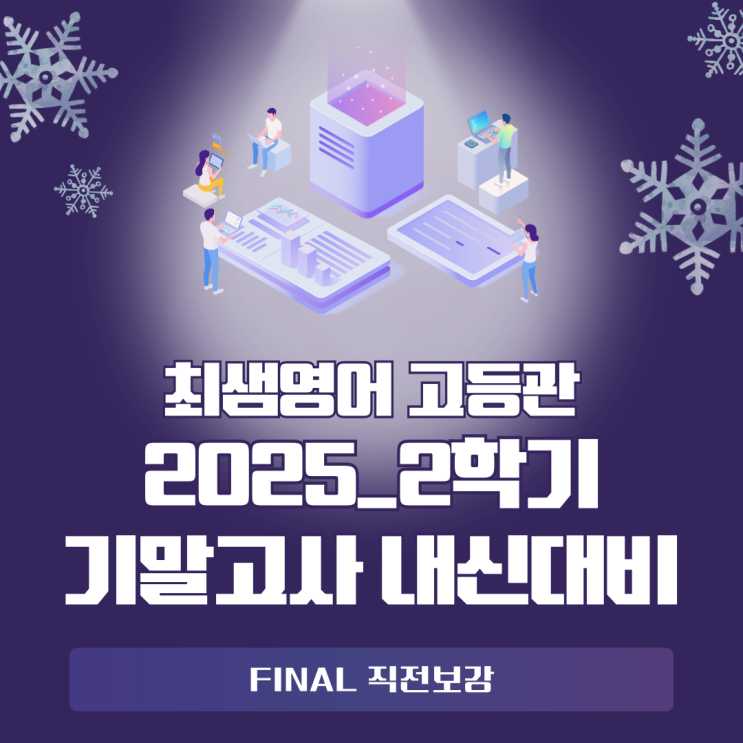 1년이 훌쩍지나 벌써 마지막인 기말고사네요! 파이널 직전보강의 현장을 보여드립니다:) 학교 시험 범위 지문과 문제를 하나하나 다시 점검하는 데 집중합니다. 단순히 문제를 많이 푸는 방식이 아니라, 왜 이 선지가 정답이고, 왜 다른 선택지는 틀렸는지를 학생 스스로 설명할 수 있을 때까지 반복합니다. 학교마다 출제 스타일이 다르기 때문에 같은 지문이라도 접근 방식은 달라집니다. 최샘영어에서는 학생들이 다니는 학교 시험 경향에 맞춰 직전대비를 진행합니다 우리 아이들 시험기간 내내 들고다닐 자료는 이렇게 만들어집니다 :) 학교 출제 포인트에 맞춰진 동형모의고사로 실전감각 올려 긴장감을 더해줍니다! 아직 정확한 등급은 나....... <img src="https://blogthumb.pstatic.net/MjAyNTEyMTNfMTEz/MDAxNzY1NTkxMDkwMjYz.ZfyRiATrOqf9ztjvL8rqB2DDIVBO8q5egbVw-pAeGQ8g.Gx4AJxt5Qb972X6MeZEZu_kGUzBO_VWWkDfVwe0mes8g.PNG/%C1%A6%B8%F1%C0%BB-%C0%D4%B7%C2%C7%D8%C1%D6%BC%BC%BF%E4_-001.png?type=s3" />