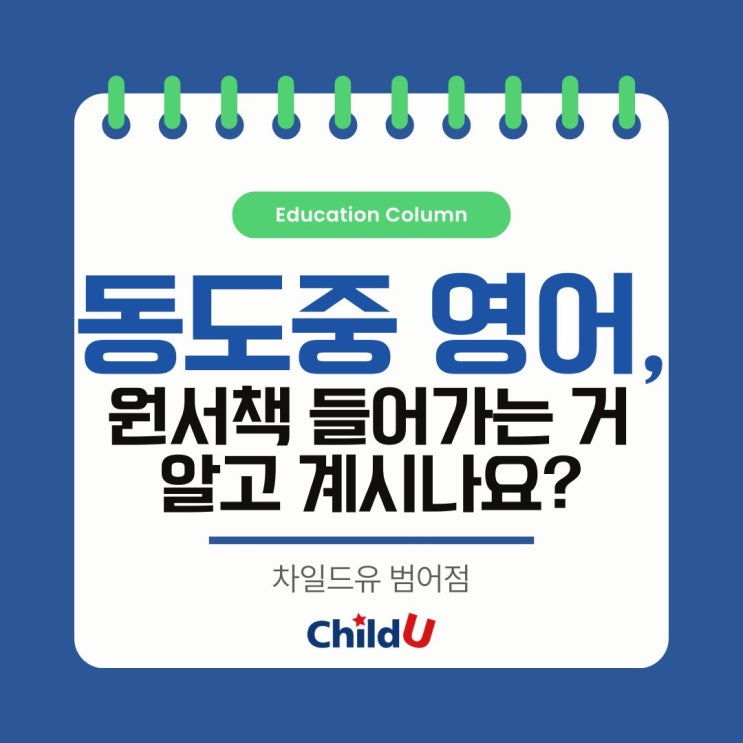 동도중 1학년 영어 시험범위에 원서 The Wild Robot이 포함되었습니다. 초등 영어 원서 리딩이 왜 중요한지 현실적인 사례로 설명드리겠습니다. 동도중 영어시험, 원서가 포함되었습니다! 요즘 동도중 시험범위 보시고 놀라신 학부모님들 많으실 겁니다. 동도중은 수성구 중학교 중에서도 공부 강도가 높은 학교로 자주 언급되는 곳이죠. 그런데 이번 1학년 영어 중간고사 시험범위에 원서 소설이 포함되었습니다. 동도중학교는 지난 설명회에서도 말씀드렸듯이 중3 시험 수준이 고등학교 모의고사와 비슷할 정도로 시험 난이도가 높은 학교입니다. 하지만 매년 1학년 1학기 중간고사는 비교적 부담 없이 출제되는 편이었는데 이번 시험범위는 이....... <img src="https://blogthumb.pstatic.net/MjAyNjA0MThfMjUy/MDAxNzc2NDg5ODE4MzE0.pwdaQ1D6JylrTzzwSwPsECzYm15ZtzSGO8ZHCt-Q8Oog.UZDqbuniC5jA2jRaboExwkONfIlYi5YdZZkkQH7qraAg.JPEG/%B5%BF%B5%B5%C1%DF_%BF%B5%BE%EE%2C_%BF%F8%BC%AD%C3%A5.jpg?type=s3" />