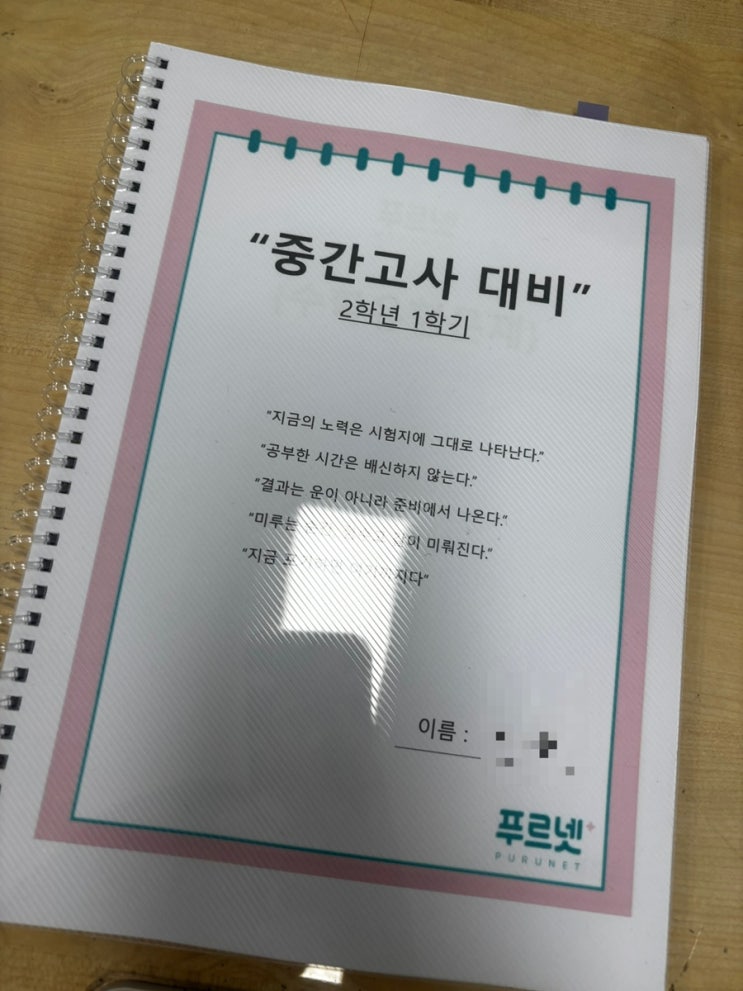 중등 수학 시험, 마지막 준비 어떻게 하고 있을까요? 안녕하세요. 중등 수학 시험이 어느덧 코앞으로 다가왔습니다. 바쁜 나날들을 보내고 있습니다^^ 현재 학생들은 새로운 내용을 배우기보다는, 그동안 학습한 핵심 개념을 다시 정리하고 자주 틀리는 문제 유형을 중심으로 반복 학습을 진행하고 있습니다. 본 교재 끝나고, 시험대비 교재를 통해 조금 더 완벽하게 준비를 하고 있는데요, 학생들의 의지를 위해 첫 표지에 "지금의 노력은 시험지에 그대로 나타난다:" "공부한 시간은 배신하지 않는다." "결과는 운이 아니라 준비에서 나온다." "미루는 순간 점수도 같이 미뤄진다" "지금 포....... <img src="https://blogthumb.pstatic.net/MjAyNjA0MTdfMjUw/MDAxNzc2Mzc4ODA3NDUw.JiAEaWWyHjXyAoR1L90RcSLNp3Fy4oV4g83JX2zK5Ycg.DA1alsNuOnEcdEau6ZeS5yoy-xUY7UCgDxE34XFSEWEg.JPEG/output%A3%DF844412486.jpg?type=s3" />