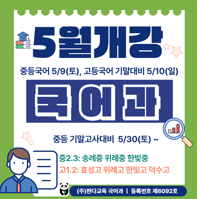 [5월 국어과] 내신 등급의 판도가 바뀐다! 판다교육 국어과 5월 기말고사 대비반 개강