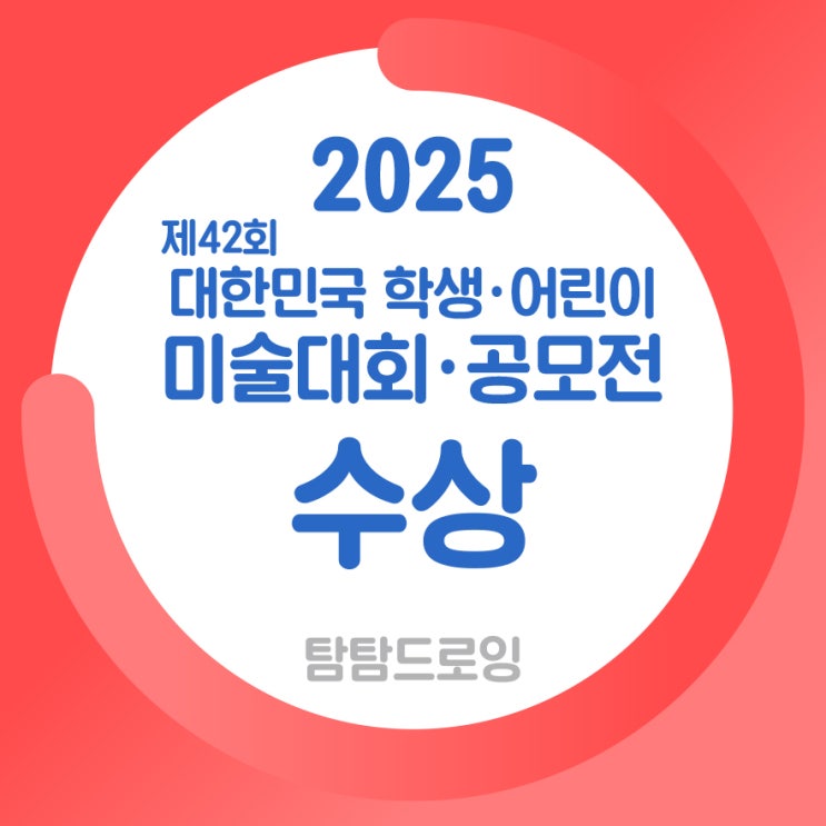 안녕하세요! 탐탐드로잉 미술학원 입니다 제42회 대한민국 학생·어린이 미술대회 공모전 결과가 발표되었습니다! 탐탐드로잉 학생들이 대상과 최고상을 휩쓸었는데~ 꾸준한 노력과 열정으로 이루어낸 값진 성과입니다! 제42회 대한민국 학생'어린이 미술대회에서 대상 및 최고상 수상자는 미국의 LA 공연장에서 실시되는대한민국 문화홍보 공연단의 일원으로 참가할 수 있는 특별한 기회가 주어집니다. 무용부문단원, 음악부문단원, 영어부문단원과 함께 대한민국 문화홍보단원으로 참가하는 미국공연에서 미술부문 단원의 수상작품이 전시되며 공연프로그램에 포함되어 무대에서 작품을 설명하는 기회가 주어집니다. 이런 특별한 기회에 탐....... <img src="https://blogthumb.pstatic.net/MjAyNTEyMDRfMjM0/MDAxNzY0ODE3Mjg3MDQ3.k4z6cNjKoYmIhf-4fBUe4SZJtCxU7EigV9Ntg1bIQlAg.5OZScL3jLjmWHD1jXZHCJ3aIzCBwwCLwBEOWLeB3FJQg.JPEG/%BA%ED%B7%CE%B1%D7-14.jpg?type=s3" />