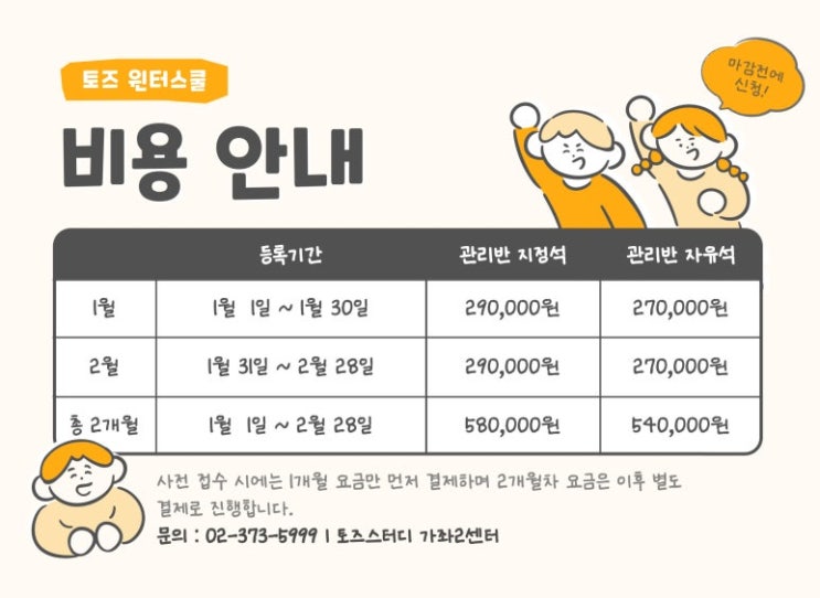 [토즈 가좌2] 겨울방학 윈터스쿨 사전접수, 자리가 빠르게 채워지고 있습니다!