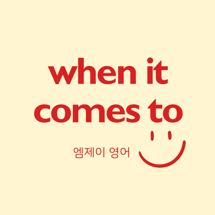 WHEN IT COMES TO라는 표현은 이야기하고 있는 주제에 대해 새로운 화제(new topic)나 새로운 측면(new aspect)을 도입할 때 사용합니다. '~에 관해서라면'이라고 해석합니다. We know we should cut down on fat but that doesn't help when it comes to eating. 우리가 지방을 줄여야 한다는 건 알지만, 먹는 것에 관해서라면 도움이 되지 않는다. However, when it comes down to somebody that they know, they have a different feeling. 그러나 막상 자기들이 아는 사람에 관한 일이라면, 그들은 다른 감정을 갖게 된다. Discovering what happens in the brain when we are captivated by beautiful objects won’t comple....... <img src="https://blogthumb.pstatic.net/MjAyNTEyMTJfMjgg/MDAxNzY1NTMwMTU3MTM1.mxwgRDuAJW6PV0VKkV4hUWsWpXxdU2Jn5VVoSrbHADQg.5nsZg_wLzsLLPhHt3Yw_r7YP9THLs6n5zAaP34QAT_cg.PNG/KakaoTalk_Photo_2025-12-12-18-02-22.png?type=s3" />