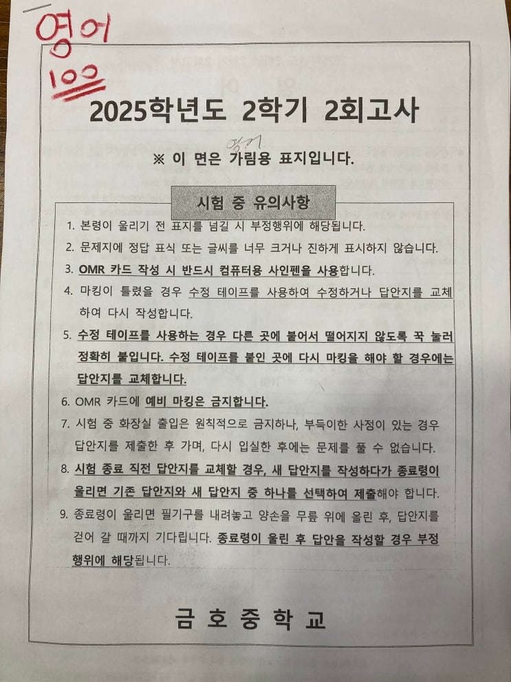 "선생님!100점이예요!!" 핸드폰너머의 들뜬 목소리에 그동안의 피로가 눈녹듯이 사라집니다. 이번 기말고사를 열심히 준비한 우리 학생들과 선생님들 수고 많으셨습니다. 중등부는 1,3학년이 없는 2학년만의 시험이었고, 고등부는 학년승급을 앞둔 긴장되는 마지막 기말고사였기에 모두의미있는 중요한 시험이었습니다. 4주에 걸쳐 주말동안에도 학원에 나와 열심히 공부해준 덕분에 우리 학생들 모두 한 명도 빠짐없이 성적이 크게 향상되었습니다. 특히 "선생님, 저 80점 넘는 점수 처음 받아 봐요." 라고 말하는 이제 등록한 지 3개월된 학생의 말에 가슴 뭉클해 졌습니다. 특히 이번 시험이 학생들 사이에서 난이도가 높....... <img src="https://blogthumb.pstatic.net/MjAyNTEyMTJfMTg2/MDAxNzY1NTA1MDA0OTA0.5uCzkqLOkSFsm5acBJa4JIUWU54JrrT2svN4moMyL74g.iOZhDCd4Z4c51qFQgAhG5LOu6JbBbhdcBESZfSWVAJkg.JPEG/KakaoTalk_20251212_110028667.jpg?type=s3" />