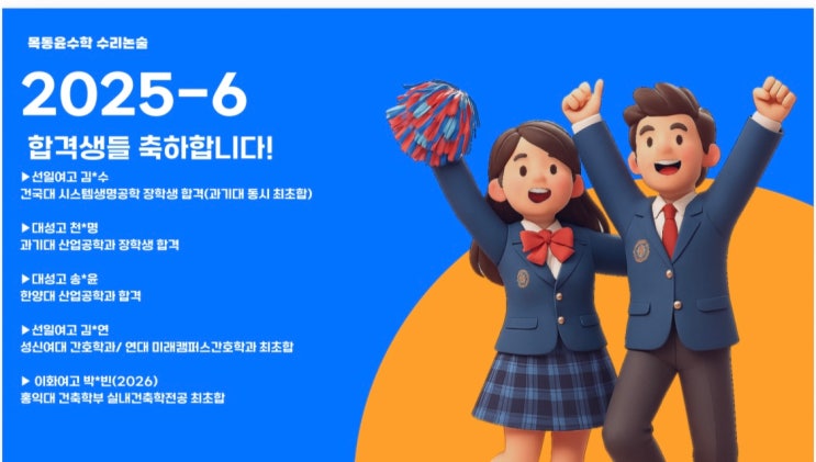 올해도 합격자가 나왔습니다.. 너무 감동스럽고.. 함께 고생한 날이 스쳐지나가며 친구들의 앞날을 응원하게 됩니다.. 올해도 1월에 개강하는 목동 윤수학 수리논술반!! 지금 가진 능력을 최대로 끌어올려줄 곳이 필요하다면 .. 수학보다 다른과목이 안나와서 고민이라면 주저말고 상담주세요, 내 시험지를 어떻게 써내려가는지를 처음부터 끝까지 지켜봐주며 첨삭해주는 곳이 있다면?^^ 01058086672 수리논술 전날까지 함께합니다. 목동윤수학 <img src="https://blogthumb.pstatic.net/MjAyNTEyMTNfMTU4/MDAxNzY1NjI1MDA4Mjc3.2bSnFtBDQ_pYGUIWKc2c4hkM1kCn2-ZuCqD0StP3hswg.fYmLSx21TOD-UAppT7Cpm15VUAQi-mNlV_zUACnVKKAg.JPEG/KakaoTalk_20251213_202121110.jpg?type=s3" />
