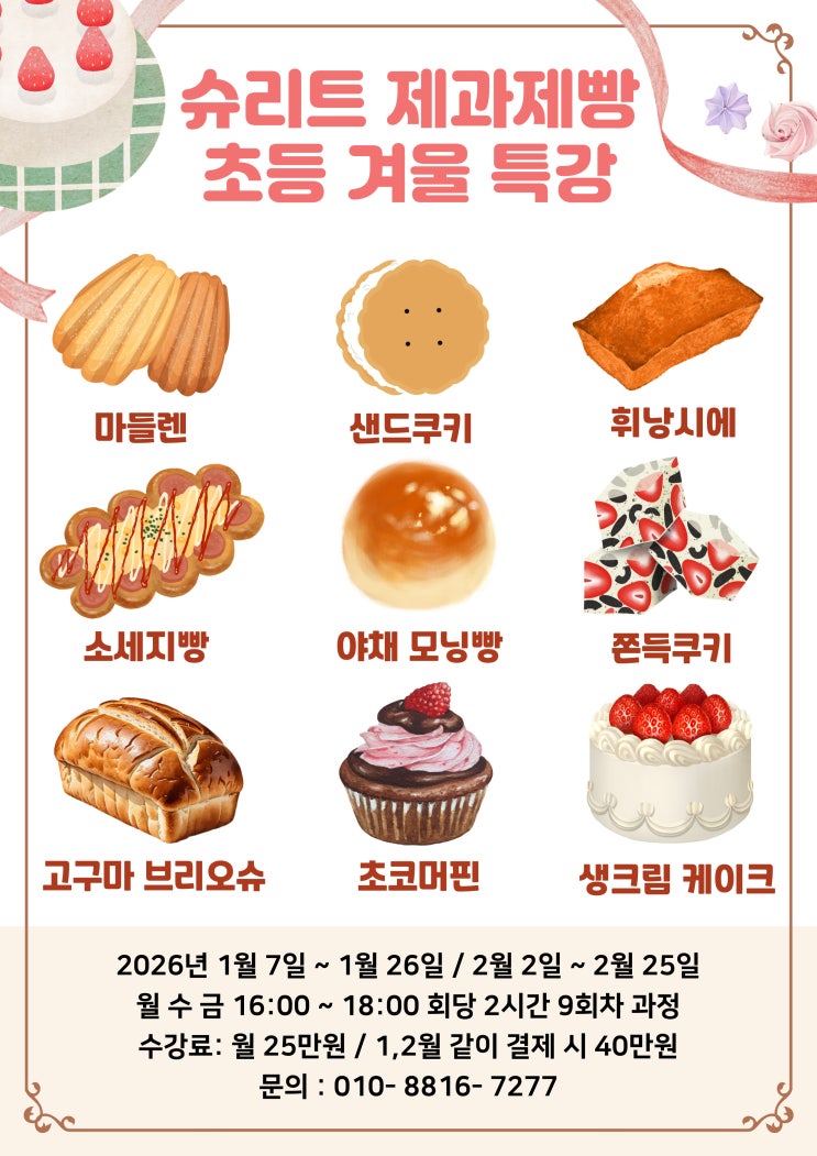 슈리트 제과제빵학원 키즈반 ~1월 2월 개강일정 안내~