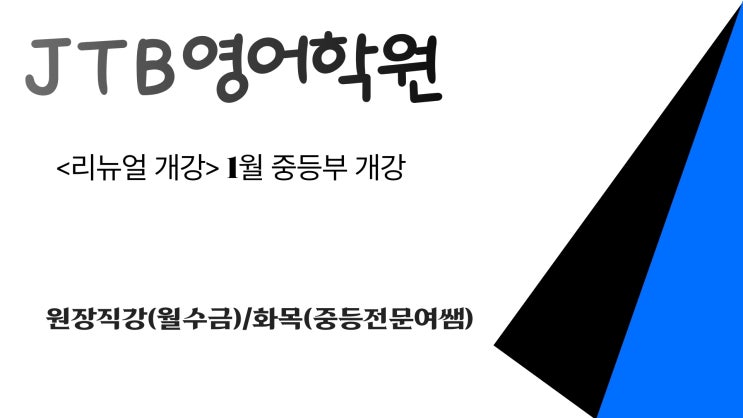 [구갈동 영어학원] JTB영어학원 중등부 1월 리뉴얼 개강공지!