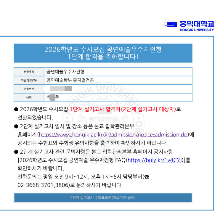 안녕하세요 부산연기학원의 자랑 건택사단 요정 혀니입니다 혀니가 오늘 아주 신난 모습으로 좋은 소식을 가지고 왔습니다 바로바로 홍익대학교 공연예술학부 1차 합격 건택사단 부산캠프에서 2명의 합격자가 나왔습니다 지원자 769명 중 1차 선발은 단 160명... 그 엄청난 경쟁률을 우리 건택사단 부산캠프 친구들이 이겨냈다구요~~ 너무나 대견하고 자랑스러워... 단순히 운이 좋아서 붙은 게 아니라는 점 건택사단 부산캠프는 그 학생들의 장점이 돋보일 수 있는 교육을 진행하고 있습니다 앞으로도 믿고 가보자구~~ 곧 더욱 엄청난 최종 합격 소식들로 찾아올 테니 조금만 더 기다려주세요~ (다들 놀랄 준비하시....... <img src="https://blogthumb.pstatic.net/MjAyNTEyMTFfMTcx/MDAxNzY1NDM1OTUzNTUw.jQGXFQcTfOjCYl6k6gBkimuZxt4Irzw8Fct5chxhX5wg.G56jjDEGiJvNdIM4dE8hIRqtMKE2ddEFpkk6zSG2MUIg.PNG/KakaoTalk_20251104_174941967.png?type=s3" />