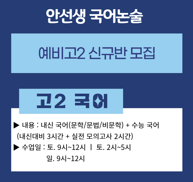 수지죽전 안선생 국어)예비고2 국어 모집_성남외고,한솔고,불곡고,계원예고,죽전고,대지고