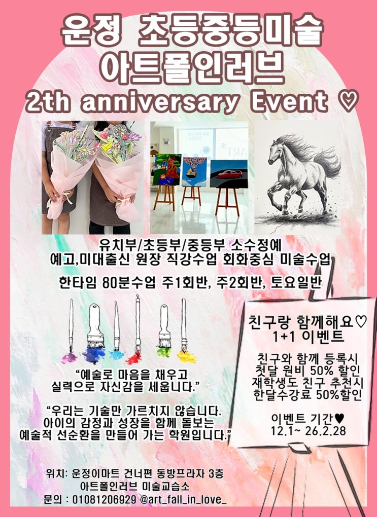 운정미술학원 아트폴인러브 2주년 할인 이벤트