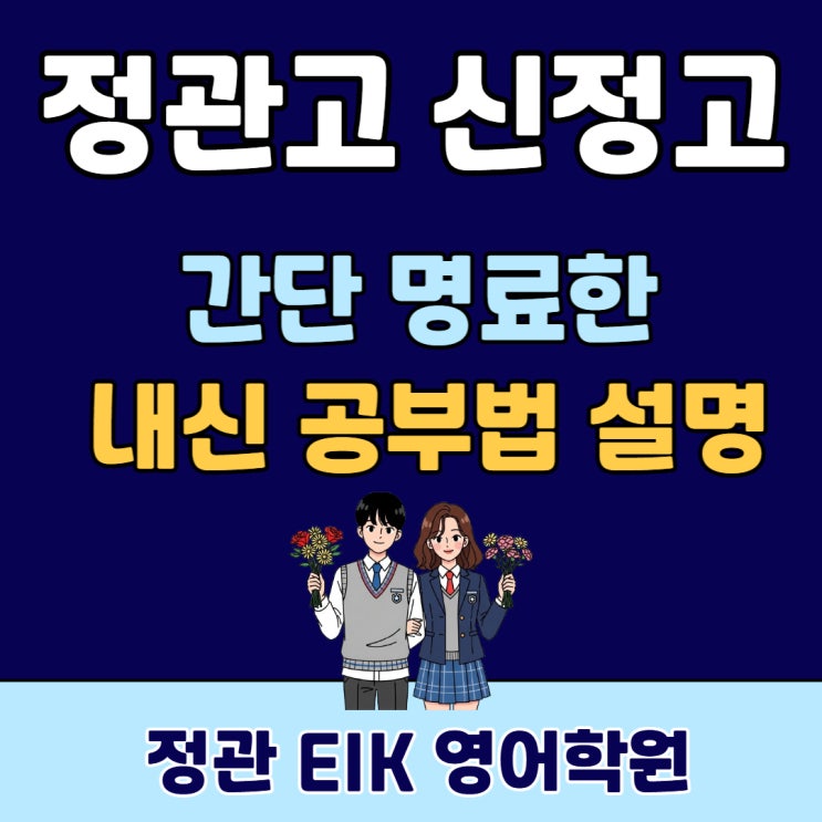 안녕하세요? 정관 고등영어 전문 EIK 입니다. 오늘은 고등영어 핵심이자 간단 명료한 공부법을 알려드립니다. 이걸 완성하기 위해 여러 방법과 노하우를 활용해서 학생들에게 접목하는게 학원의 역할인거죠. 고등 내신 영어, 핵심만 제대로 잡는 가장 현실적인 공부법 고등학교 영어 내신을 효율적으로 대비하려면 무엇보다 방향을 정확히 잡는 것이 중요합니다. 불필요한 시간을 낭비하지 않으면서도 점수를 올리는 전략은 사실 단순합니다. 교과서–부교재–모의고사, 이 세 가지를 어떻게 각각 다르게 접근하느냐가 승부를 가릅니다. 1. 교과서: ‘정확한 통암기’가 핵심 고등 교과서는 대부분 2개의 본문으로 구성됩니다. 이 두 지문만큼은....... <img src="https://blogthumb.pstatic.net/MjAyNTEyMTJfMjM0/MDAxNzY1NDk4NjcxNzI4.Qpk2cwxcDJL7V2ZGZvWCFTUZZ5TlmMbogZkH7UXbwWgg.burSwI0WzBIJkafzuDpCxBrqnjWEkr-27ogFxppkWgEg.JPEG/25.12.11J.jpg?type=s3" />