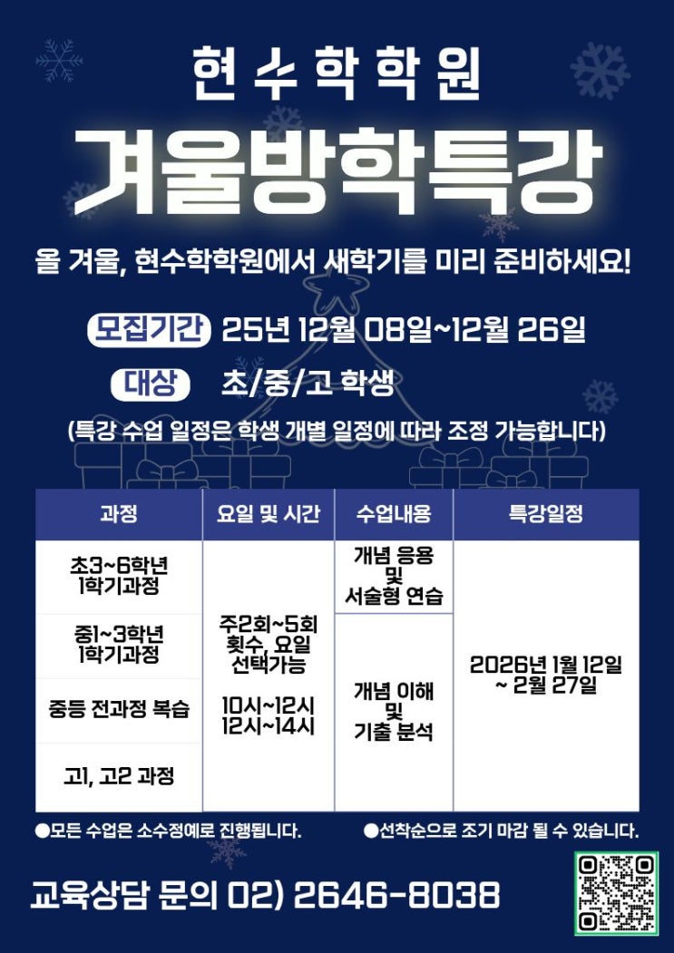 ❄️✨ 현수학학원 겨울방학 특강 모집 안내 ✨❄️ (오전수업)