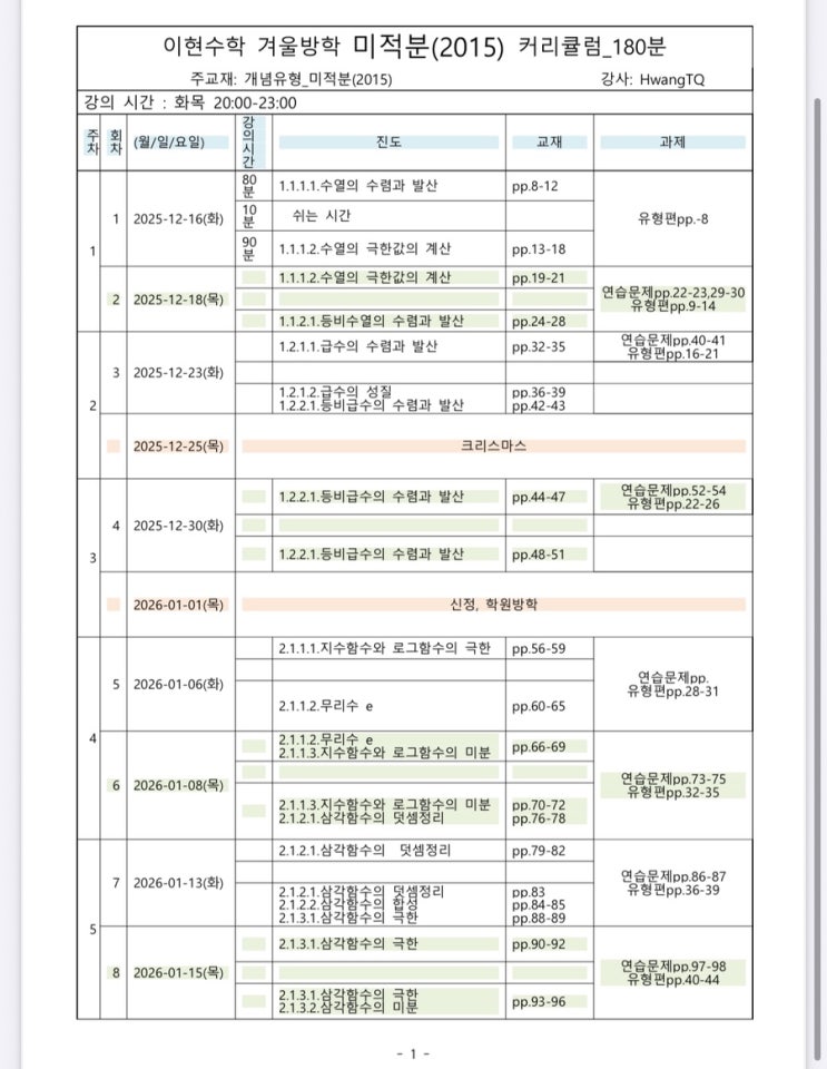 미적분•확률과 통계반 개강 안내 안녕하세요. 원주 기업도시 수학 전문학원 이현 수학학원입니다. 12월 첫째 주 기말고사가 마무리 되면 셋째 주부터 <미적분• 확률과 통계반>이 개강합니다. 겨울방학은 고등 수학의 핵심 과목을 가장 안정적으로 다질 수 있는 결정적 시기입니다. 특히 확률과 통계, 미적분은 내신·수능 모두에서 상위권을 가르는 대표 단원으로, 중간에 구멍이 생기면 학기 중 따라잡기가 매우 어렵습니다. 이번 겨울, 이현수학학원은 다음과 같이 집중 특강반을 운영합니다. 미적분 •일정: 25년 12월 16일(화)~26년 2월 26일(목), 화목 3시간 수업 •대상: 현 고등 2학년 중 미적분 선택 학생, 현재 고1 이....... <img src="https://blogthumb.pstatic.net/MjAyNTExMjdfMTc0/MDAxNzY0MjEwMTk3NjM4.I3UEXNClxSrFNdwUPSLinEil9Vrddpfsnlr5wWEOuJEg.Q0vcnG3X94bGoKuIlbFaVmJFWgW7yHOcB9GJ2uWyM2Ig.JPEG/IMG%A3%DF8797.jpg?type=s3" />