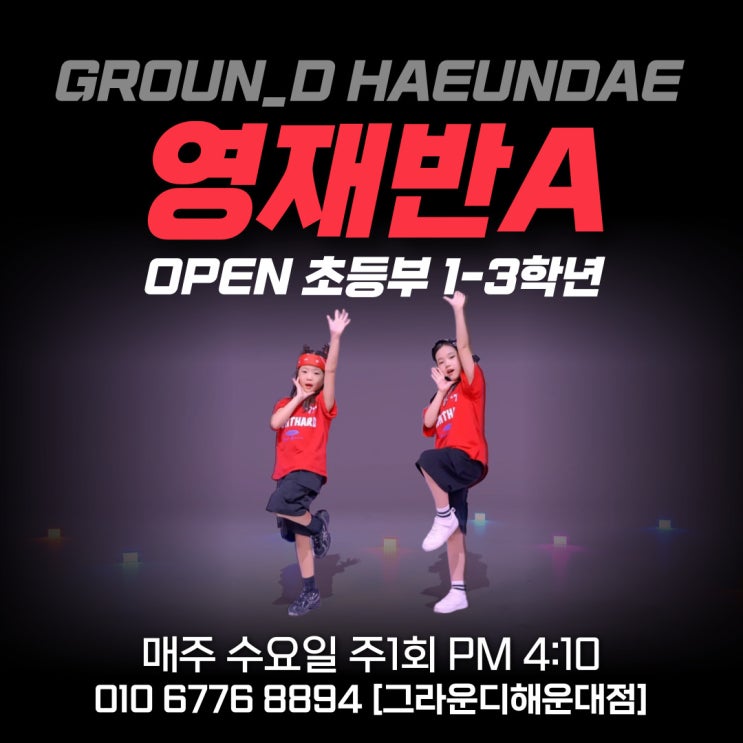 안녕하세요 #부산댄스학원 #해운대댄스전문학원 #그라운디댄스학원 해운대점 입니다 :) 그동안 많은 학부모님들께서 “저학년 아이가 전문반을 하기엔 조금 부담스러울까봐 고민돼요.” 라는 말씀을 해주셨습니다. 기존의 초등 저학년 전문반은 다양한 장르댄스 수업, 주3회 이상 수업과 연습, 외부 대회참가, 촬영 등의 커리큘럼으로 구성되어 있어 실력 향상에는 최적화되어 있지만, 처음 시작하는 친구들에게는 다소 무겁게 느껴지기도 했어요. 그래서 고민 끝에! 댄스를 더 편하게, 더 즐겁게, 그리고 더 멋지게 경험할 수 있는 영재반(촬영전문반)을 새롭게 오픈했답니다! 부담 없이 즐기는 첫 번째 전문반, 지금 모집합니다! 촬....... <img src="https://blogthumb.pstatic.net/MjAyNTEyMTJfMTU3/MDAxNzY1NTMxNjk5MjM5.Kx6qh4RJPRCFcekCM7f8iPLqSZ5vbfGg1wOvUNk9SFwg.SjznLJUbAaN4xWYLRMR_eV05ryeQ7wHfyn1QxTBpMi8g.JPEG/KakaoTalk_20251211_162540115.jpg?type=s3" />