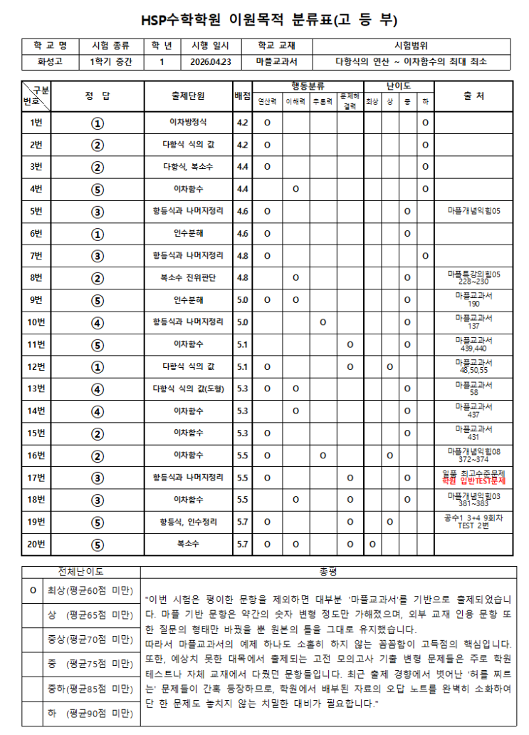 명문수학학원,청북수학학원,청북고2수학[4월 23일]