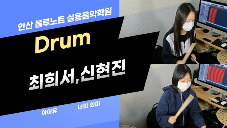 안녕하세요 안산 블루노트 실용음악학원 입니다. / 안산실용음악학원 안산드럼학원 / 안산피아노학원 / 안산기타학원 안녕하세요 블루노트 실용음악학원 입니다. 안녕하세요 블루노트 실용음악학원 입니다. 최희서,신현진 학생의 아이유-너의의미 드럼 연주 영상 입니다. 첫곡 촬영이었는데 깜~~~짝 놀랐습니다. 둘다 너무 잘해줘서 이친구들은 수업형태와 기간등 여러가지를 고려해서 생각했을때 드럼 전공을 해야하나 라고 생각될 정도로 잘 해주었습니다. 안산실용음악학원 / 안산드럼학원 / 안산작곡학원 / 안산피아노학원 / 안산기타학원 / 안산실용음악입시 안산실용음악학원 / 안산작곡학원 / 안산드럼학원 / 안산기타학원 / 안산보컬학원....... <img src="https://blogthumb.pstatic.net/MjAyNTEyMTFfMyAg/MDAxNzY1NDIzODA4Mzkx.Ng2eI1ZSp00ZBPc3ADdcuN0i5AcK8n-VN-OR-QYx-D8g.GJPMIjt15MV7pqaf9xc7OmLBJGvO3z9Q7uPBw9NjPlQg.JPEG/%B3%CA%C0%C7-%C0%C7%B9%CC-001.jpg?type=s3" />