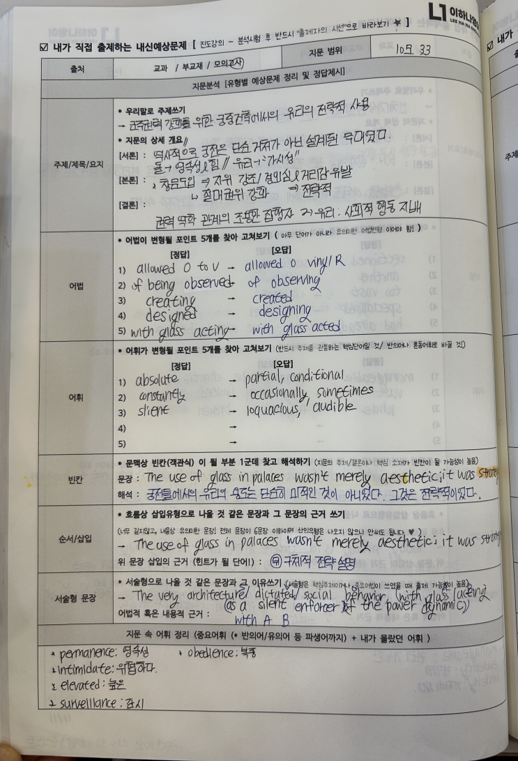 말도 안되는 평균이 나왔습니다. 솔직히..... 너무 쉬운데요? [창원여고 1학년 기말고사 상세분석] 1학년 시험은 지난 2학기 중간고사보다 훨씬 쉬운 난이도로 출제되었습니다. 특히 서술형에서 거의 변형이 없어서 성실히 복습한 학생이라면 충분히 잘 적었을 겁니다. 문제는 객관식입니다. 오히려 서술형보다 까다로웠거든요. 특히 내용 일치 유형인 15번이 킬러 유형으로 나와 등급을 갈랐습니다. 반면, 2학년 시험은 정반대였습니다. [창원여고 2학년 기말고사 상세분석] 객관식 난이도가 확 내려가면서 등급 구간이 걱정될 정도로 쉬워졌습니다. 재원생도 절반 이상 객관식 만점을 받고 이하나 수강 직전 내신 5등급이던 학생도 이번 시험에....... <img src="https://blogthumb.pstatic.net/MjAyNTEyMTBfNjcg/MDAxNzY1MzU1ODk5NDIw.uau6VxZjIbK5b3_qIEvnQqukNPTxl9BG21bLKjvJPmQg.56hhbBbksdS9AkdcFuuoT3Z66XrrAF5RlTPfSJa76qwg.PNG/image.png?type=s3" />