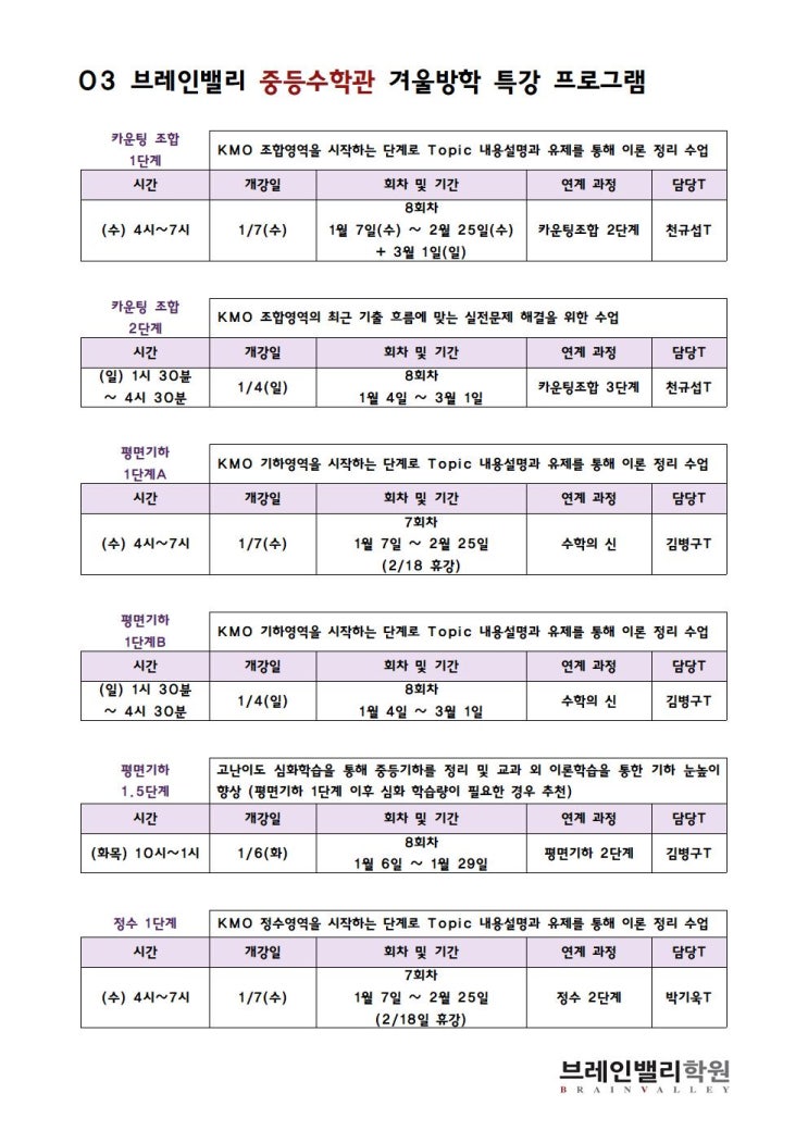 수미사 중계관] 은행사거리 수학학원 겨울방학 특강안내
