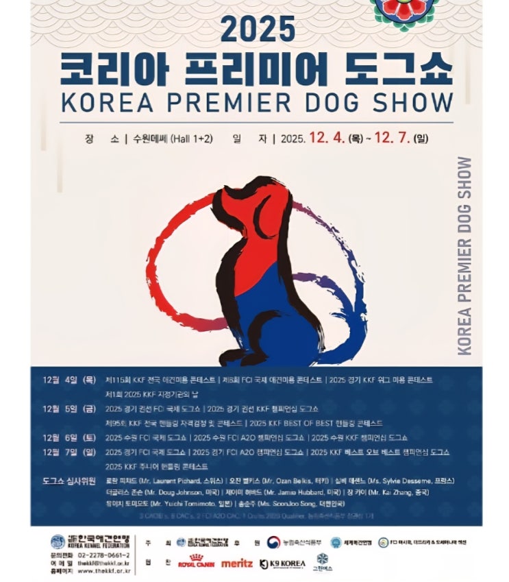 안녕하세요^^ 언제나 넘버원 상위 1% 애견미용학원 #홍대애견미용학원 #신촌애견미용학원 서울설민우애견미용학원 입니다 정말 오랜만에 찾아뵈었어요~ 너무 보고싶으셨죵^^ 12월 4일 목요일부터 12월 7일 일요일까지 KKF 전국애견미용대회 및 FCI 세계애견미용대회와 FCi KKF 국제도그쇼가 #수원매쎄 에서 개최되었습니다~ 이렇게 많은 분들이 참가하셨습니다~ 모두 모두 함께 열씨미~~ 본격 포스팅전에 잠시만요^^ 2026년 1월 필리핀에서 서 FCI 세계애견미용대회가 개최되는데요~ 홍대설민우 강사이신 이지현 강사님께서 한국대표~ 국가대표로 참석합니다. 2024년 한국에서 개최된 FCI 세계애견미용대회에서는 대한민국 우리나라가 우....... <img src="https://blogthumb.pstatic.net/MjAyNTEyMTFfOTUg/MDAxNzY1MzkxNzI5NDQ4.pYML23YZ4AHUc6ruUnv_wRryAvlbS7O84Q82JmalfJ4g.uJGbOyDyRZzwKJxMDrYFXLqhm8-EC9lO7dTSMtVACGMg.JPEG/900%A3%DFScreenshot%A3%DF20251211%A3%DF010700%A3%DFKakaoTalk.jpg?type=s3" />