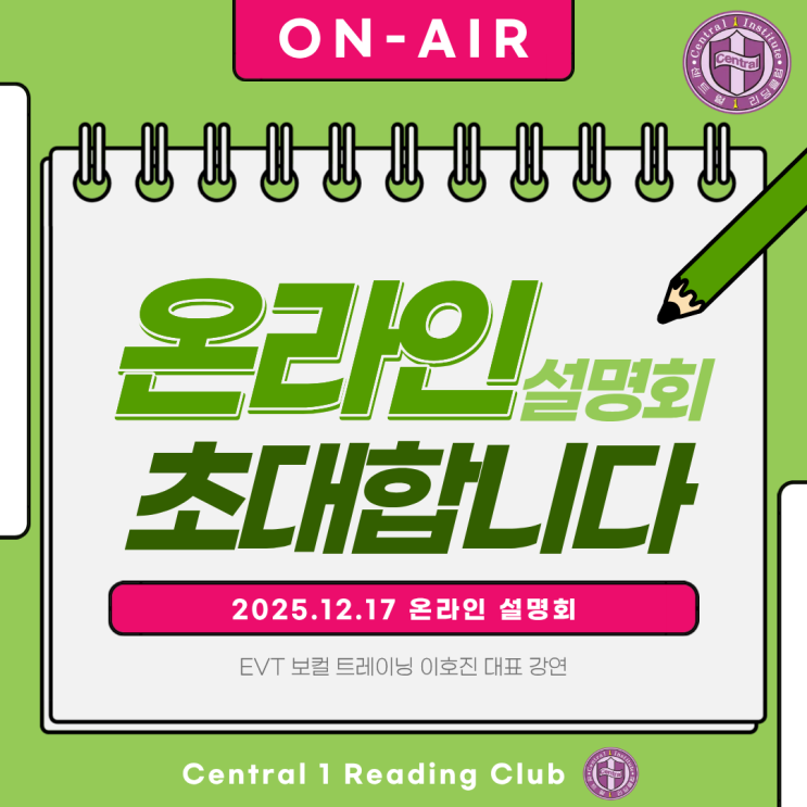 영어를 처음 시작할 때 무엇을 가장 먼저 배우는 것이 좋을까요? 많은 부모님들이 "문법? 단어? 읽기?"를 고민하시지만, 실제로 영어 실력의 기반은 '소리'와 '사용경험'에서 시작됩니다. 다사 영어학원 센트럴 리딩클럽의 영어 보컬 트레이닝 (EVT)은 바로 이 기반을 만들어주는 핵심 프로그램이랍니다. 이번에 학부모님들께 다사 영어학원 센트럴 리딩클럽의 첫 시작을 함께하는 프로그램에 대해 더 정확히 전달드리기 위해 EVT온라인 설명회를 진행하게 되었습니다. 이번 설명회에 참석 해 주신 어머님들을 위해 11만원 상당의 혜택이 있는 이벤트 까지 준비하였으니 꼭 참여 부탁드려요^^ EVT 프로그램은....... <img src="https://blogthumb.pstatic.net/MjAyNTEyMTBfMTUw/MDAxNzY1Mzc2MzY5OTA0.uWZle-yJ1h13ui-mMteSWRAbDdhggopkF0R15fSr0Bsg.5V0gTFAraLWTOXUvYG3O9QRglh80QeZmcUrlizPhwYUg.PNG/2025-12-10-1.png?type=s3" />