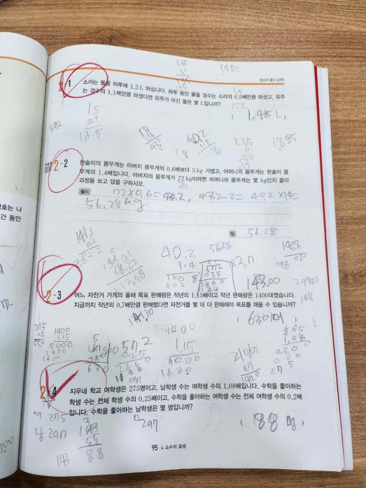 여기저기 중구난방 계산만 정신없이 하던 5학년 케이군~~~ 글씨도 엉망이라 매번 지적 받고 잔소리 들었는데.. 우리 케이가 달라졌어요!!!!!!!! 이제 선생님이 잔소리 안해도 풀이과정도 쓰고 글씨도 이쁘게 쓰고 이런 날이 오는 군요!!!!!!! 돌고래 버젼으로 하이톤 폭풍 칭찬 해드렸더니 더 잘하네요~~~♡♡ 이제 중등 과정도 쭉쭉 진도 나가면 되겠어요~~♡ <img src="https://blogthumb.pstatic.net/MjAyNTExMjdfMjE0/MDAxNzY0MjIxNjExNzUw.QpzgYLsFEODDx6Kba0Lag2PuGWR0ADAYl0qvLlVksfAg.AP21_BUO92HVXkH-3CgprgtxmLPxKFGoyNH7ffiKKW0g.JPEG/900%A3%DF20251127%A3%DF143319.jpg?type=s3" />