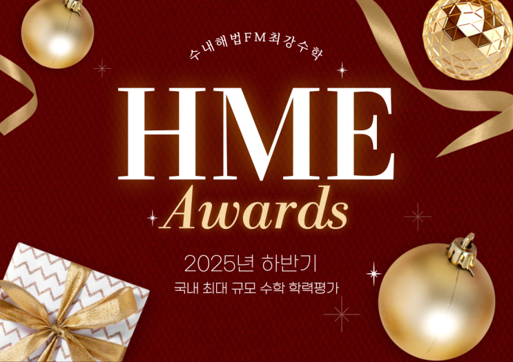 2025년 하반기 HME 전원 입상! 안녕하세요, 수내해법FM최강수학입니다. 이번 2025년 하반기 HME(해법수학 학력평가)에서 우리 학원 학생들이 전원 입상이라는 놀라운 성과를 이루어냈습니다! ✨ 국내 최대 규모의 수학 학력평가에서 모든 학생이 상을 받는 결과를 만들었다는 것은 단순한 ‘성과’가 아니라, 학생들의 꾸준한 노력과 올바른 공부 루틴이 만들어낸 값진 결실입니다. 왜 이 성과가 중요한가? 1) HME는 전국 단위의 대형 평가로 난이도와 경쟁률이 높은 시험입니다. 2) 전원 입상은 단순히 ‘잘했다’를 넘어서 전반적인 학습 체계의 안정성을 증명합니다. 3) 우리 학원의 커리큘럼과 학습 관리가 제대로 작동하고 있....... <img src="https://blogthumb.pstatic.net/MjAyNTEyMTFfMjE1/MDAxNzY1NDE5MDA2MzY4.lAJ9TlcvLLhf-vufgsOwruPQ_90tGPF5K-L244QDFNsg.vdjB5bqQwHM0PPNoKzs8vCz91Ek1dY4_xdoYhi1XUCsg.PNG/001.png?type=s3" />