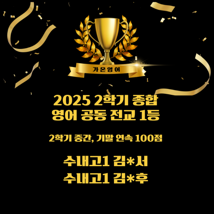 안녕하세요. 분당 수내동, 수내고를 가장 잘 아는 영어학원 가온영어입니다. 2025년 한 해가 마무리되어가는 시점, 가온영어 재원생들이 또 한 번 놀라운 기적을 만들어냈습니다. 단순히 "성적이 올랐다"는 수준을 넘어, 수내고등학교 영어 내신의 정점(頂點)에 우리 학생들이 우뚝 섰다는 소식을 가장 먼저 전해드립니다. 오늘은 2025년 2학기 성적 분석 결과와 함께, 왜 학년이 올라갈수록 영어는 결국 '가온'이어야 하는지, 그 필승 전략과 데이터의 힘에 대해 깊이 있는 이야기를 나눠보려 합니다. 1. 2025년 2학기, 수내고 영어의 '왕좌'를 차지하다 이번 2학기는 유난히 치열했습니다. 변별력을 위한 까다로....... <img src="https://blogthumb.pstatic.net/MjAyNTEyMTBfODkg/MDAxNzY1MzY0MDMxNDkx.bgCOmnwdslrV7PcwHRYyR9UKI_1qGFptpbzDmEtYEV4g.IAU0FSXZ0bTLri1LsO7FfJv9B-WO7nMeJq4o686dSyUg.PNG/%BC%F6%B3%BB%B0%ED_%BF%B5%BE%EE.png?type=s3" />