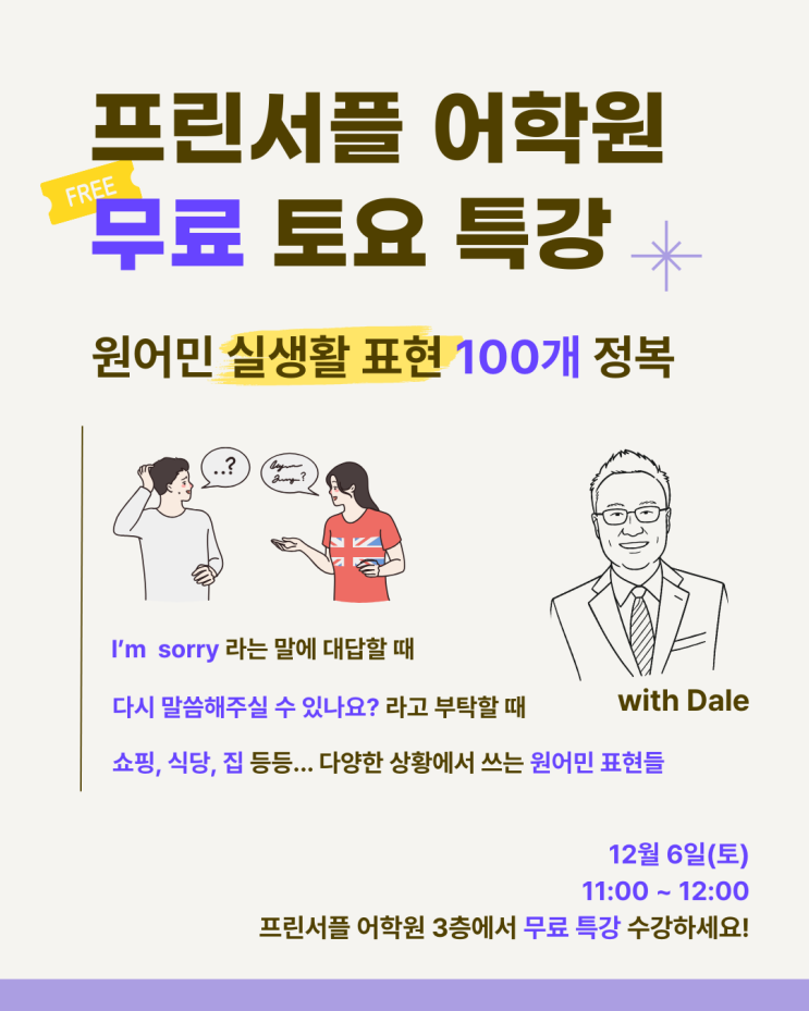 원어민 실생활 표현 100개 총정리! [프린서플 토요 무료 특강] (12월 6일) *선착순 20명!*