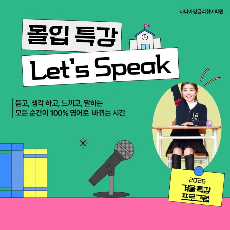 [겨울방학 특강] 식당 주문부터 여행 영어까지, 직접 대본 쓰고 연기하는 'Let's Speak' 특강 안내_원어민 방학 특강 스피킹 특강 시흥 은계 영어 나디아잉글리쉬 은계캠퍼스