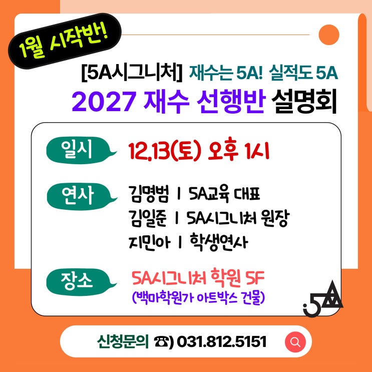 [일산재수] 5A시그니처 l 2027 재수선행반 설명회