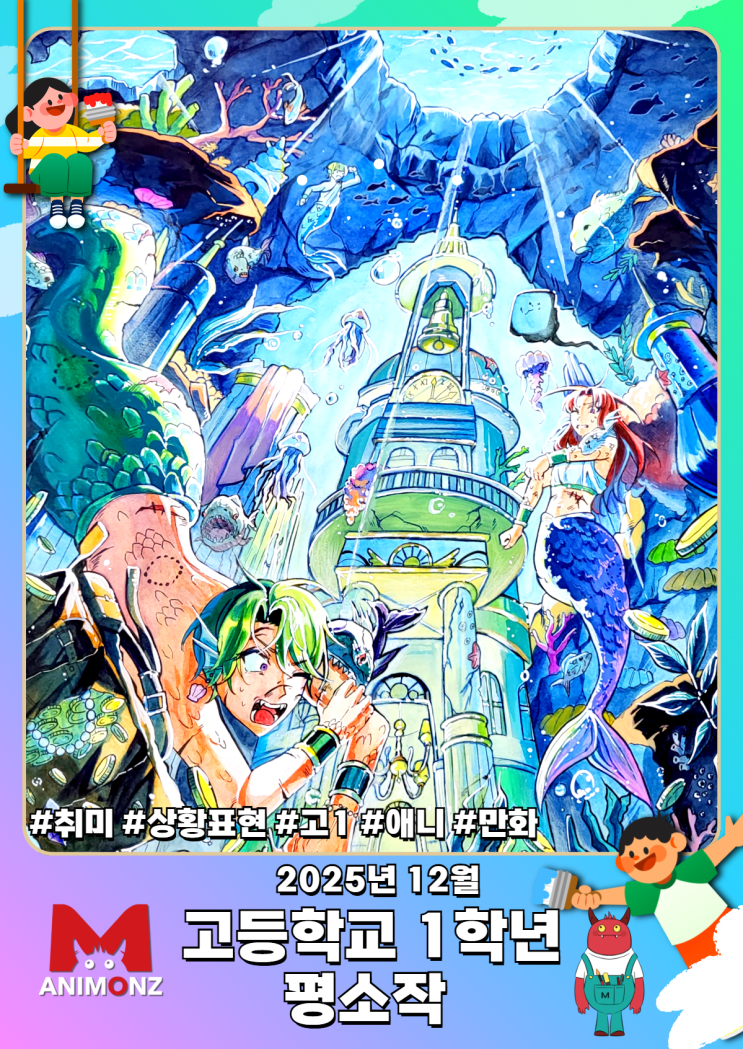 안뇽 안뇽하세요~ 1학년 담당인 하T입니다! 흰 눈 사이로~ 썰마를 타고~ 벌써 눈이 내리고 추운 12월이 왔습니다!! 저희 애니몬즈 친구들은 12월달에는 무슨 그림들을 그릴지 궁금하시지 않으신가요? 한번 구경하러 가보죠~ 애니몬즈 학생의 귀여운 낙서로 시선 사로잡기! 이렇게~ 12월달의 고 1 의 작품들 이였습니다~! ▼ 애니몬즈 고등반 다른 수업작 더보기▼ <img src="https://blogthumb.pstatic.net/MjAyNTEyMTJfNSAg/MDAxNzY1NTQ2MTQ3OTUx.08K9OT_iB2AmrpLAeIWPHiMxuHaz3goy1DRFGorsWnYg.Ro8-HxlHhydswfVcev4pVIqx76uP0DlIbjqbDEizIm8g.PNG/%BA%B9%BB%E7%BA%BB_2025_12%BF%F9_%B0%ED1_.png?type=s3" />