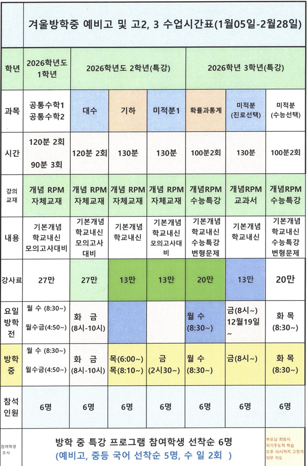 [천안 중앙고 예비고1, 고2, 고3 겨울학기]