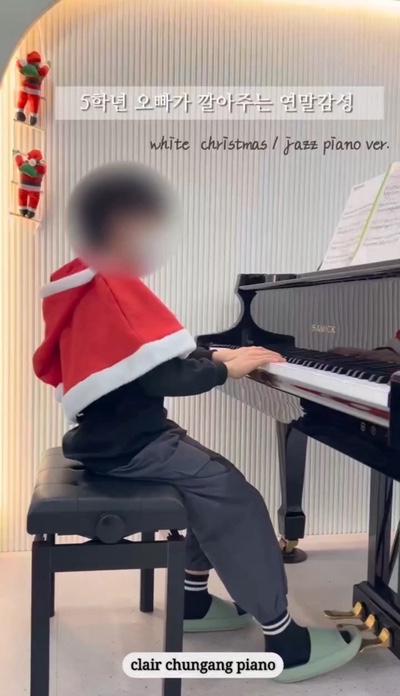 안녕하세요, 악기교육의 첫걸음부터 전공까지, 감성인재가 자라나는 부산진구 초읍동 ❝ 끌레르중앙 음악학원 ❞ 입니다. 미리 크리스마스! 저희 끌레르중앙의 두번째 캐롤 시즌이 돌아왔어요 :) 와아아아아 ♪ 오늘은! 꾸준한 연습으로 먼저 완성한 우리 열정러 끌둥이들의 캐롤 영상을 공개합니다. 먼저 우리 5학년 오빠가 깔아주는 연말감성, ❝ White Christmas (jazz piano ver.) ❞ 연주인데요.. ♥ 익숙한 정박자 대신 엇박에 스윙 리듬 콜라보 열심히 박자쪼개기를 해도 결국은 몸으로 느끼면서 연주해야 한다는 걸 깨닫게 한 그런 캐롤곡이었...답니다? ㅎㅎ 사실 난이도가 꽤나 높은 곡이었는데 너무 잘 해내준 우리 끌둥이.. 진....... <img src="https://blogthumb.pstatic.net/MjAyNTEyMDZfMTIx/MDAxNzY1MDI1MTExNDUy.lvpVS9sAJPCcK8BIryukr0yTPSPQhKwkRpBjK9-it1gg.TFInMhq4bCg7H7LTJ3Aa5uM8Yd0ynPHeJBR7BVhrl8gg.JPEG/IMG%A3%DF7841.jpg?type=s3" />