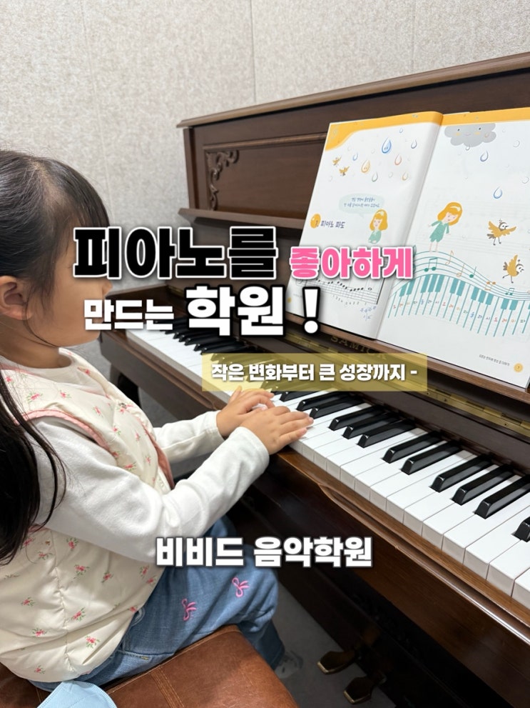 아이의 첫 피아노, 이렇게 달라졌어요✨ 악기가 처음이라 무엇부터 시작해야 할지 몰랐던 아이. 처음엔 한 손으로 누르는 것만도 어려워했는데요, 요즘은 양손으로 멀티 연주까지 척척! 변화가 눈에 보일 정도로 빠르게 성장하고 있어요 눈높이를 맞춰 아이들과 소통하며 1:1 교육을 하다보면 더 집중력 있게 교육을 해내게 된답니다 ❤️ 어색하고 낯설어하던 모습이 엊그제 같은데 지금은 그 누구보다 즐겁게 피아노 앞에 앉는답니다❤️ 아이 스스로 “오늘은 뭐 배우나요?!” 하고 먼저 이야기할 정도예요! 레슨을 받으면서 ✔️ 집중력·태도 변화까지 함께 성장 ✔️앉아있는 집중 시간 증가 ✔️과제를....... <img src="https://blogthumb.pstatic.net/MjAyNTEyMDRfMTQ5/MDAxNzY0ODI2NjIzMTg4.p4aPlnfgGnTgZCT_Spp6WC_prm5fnCVDT9peFwjjE6Mg.YcjBEtIUBBfvUuj2iT7CSc4H1s90L6FLfPxytid3C4og.JPEG/IMG%A3%DF6785.JPG?type=s3" />