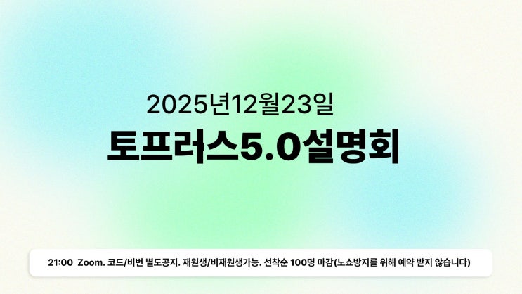 구영리 초등부/중등부 영어학원, 2026년 더 확장 된 토프러스 프로그램을 소개합니다. 그래머패스, 보카패스, 리딩패스를 포함한 토프러스가 지향하는 학습목표에 대해 상세히 설명 드립니다. 해당 설명회는 울산 토프러스 전체 설명회이며, 인원 제한으로 늦게 접속하시면 참석이 불가능합니다. 보통 시작 1~2분전에 100명이 마감됩니다. 링크,비번은 문자로 공지 드리겠습니다. 구영 토프러스 추가 설명은 줌이나 문자등을 고려해서 추가 안내 드리겠습니다. (비재원생 학부모님께서는 211-1102번으로 문의 주세요) 감사합니다. <img src="https://blogthumb.pstatic.net/MjAyNTEyMTBfODAg/MDAxNzY1MzU1MzAxODEx.BiGY1AlNuRDOtoBT2PSoObXUQKRKyKmsEYqEoBImHOQg.CEED_jZGPlogWcMqY0tz8SlNRjNSyRqTPuOR4S44aKkg.JPEG/%C1%A6%B8%F1%C0%BB_%C0%D4%B7%C2%C7%D8%C1%D6%BC%BC%BF%E4.jpg?type=s3" />