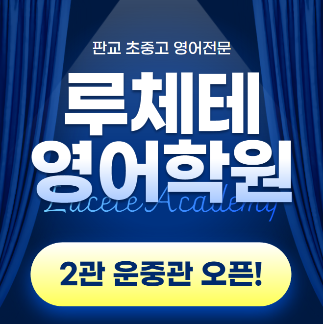 안녕하세요! 루체테영어학원 입니다^^ 이제 운중동에서도 여러분을 만납니다! 많은 학부모님들께서 루체테영어학원에 관심과 성원 덕분에 운중동 2관에서 더 많은 학생들을 만날 수 있게 되었습니다. 영어 학습은 단기간의 성과보다 아이의 수준과 학습흐름에 맞춘 꾸준한 관리가 중요합니다. 루체테영어학원은 ※초등기초부터 ※중등내신/고등내신 ※수능까지 단계별 커리큘럼을 바탕으로 체계적인 수업과 학습관리에 집중해 왔습니다. 새롭게 오픈한 2관 역시 학년별,수준별 맞춤 수업, 꼼꼼한 학습관리,학교내신과 연계를 고려한 학습 흐름까지 우리 아이들이 안정적으로 공부할 수 있는 환경을 준비했습니다. 2관 (운중관) : 운중로115 7층 (....... <img src="https://blogthumb.pstatic.net/MjAyNTEyMTRfNDcg/MDAxNzY1NzEzMDc2ODg2.uT0mRPmWU3Q4uYq1Yq6206wbmjyLdb7pkN6YwEV4yWsg.y_q5em14VEVP_RWtf6soSLZLmVUaa9aIyiyq9ESG9M0g.PNG/image.png?type=s3" />