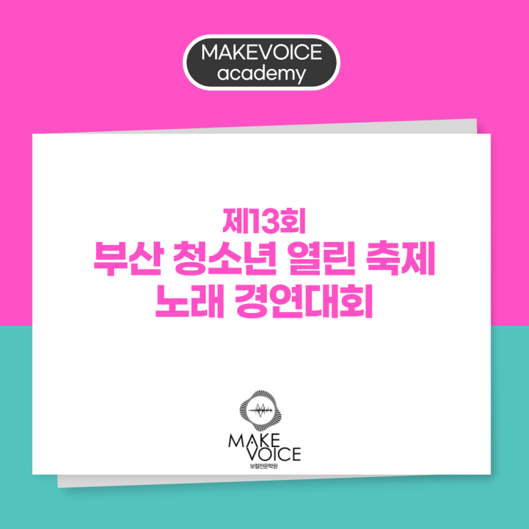 (부산교육청 제5087호) 안녕하세요. 부산 1:1 보컬컨설팅 전문학원, 체계적인 소수정원제로 꼼꼼히 관리하는 메이크보이스 보컬전문학원 입니다. 오늘은 부산광역시 청소년 활동 진흥센터에서 주관하는 부산 청소년 열린 축제 노래 경연대회 소식을 가져왔습니다! 참가 방법 (9세~24세) 2026. 4. 7 (화) ~ 4. 23 (목)까지 노래 영상 이메일 제출과 신청서 제출을 해주시면 되요. MR을 사용한 전 장르의 노래 가능합니다. 본선 일정 2026. 5. 23 (토) 12:00 ~ 13:00에 본선 경연이 진행됩니다. ➡️ 합격 / 수상 ➡️ 인스타그램 상담 안내 원장이 직접 상담과 레벨 테스트를 통해 여러분에게 가장 적합한 컨설팅을 도와드립니다. ➥....... <img src="https://blogthumb.pstatic.net/MjAyNjA0MThfMjAz/MDAxNzc2NDQxODE2NzM4.r6MmcjdU6W19sGClr_Sj31QxpawmTGA0pvEoQumfFXcg.7GufmR4KjHbuUjgRQn30o_OfLKRPksryHlVNjy_B1Xog.PNG/001.png?type=s3" />