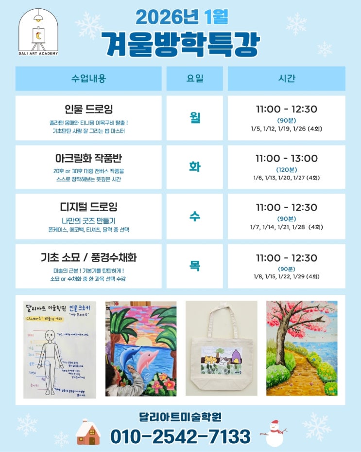 판교 미술학원) 달리아트 2026년 1월 겨울 방학 특강 클래스 안내