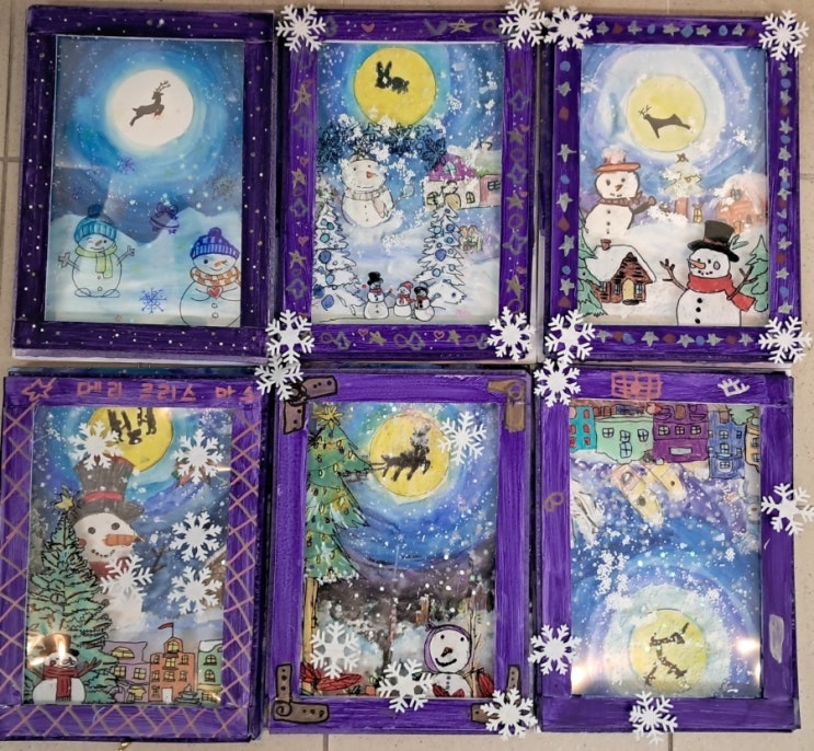 와~~ 겨울이다~~^^!!! 눈이 기다려지는 하얀겨울이 왔어요~~^^♡ 하얀눈나라로 여행을 떠나 볼까요~~^^ 반짝반짝이는 별도 숨겨 두었으니 찾아보세요~ 위아래로 흔들때마다 눈송이가 떨어져요~~ 사락사락 소리도 들리구요~~ 와~~~넘~~~ 멋져!!!! 친구들의 작품과 함께!! 찰칵!! 달빛에 비친 산타할아버지~ 내선물 가지고 오시는 중~~!!?? 제1차 작업중 모습!! 액자 씌위기전 짜잔!!! 짜잔!!♡ 눈내리는 겨울 풍경을 배경으로 눈사람과 트리를 그려보았어요~^^ 멋지죠~♡ 따란!!! 이번주에도 멋진 눈과 함께 겨울풍경을 표현해보았어요~ 각자 생각을 담아내는 멋진 작업을 즐겁게 해준 친구들 완전~~칭찬해요!! 상담문의 051-633-0323 체험수업가....... <img src="https://blogthumb.pstatic.net/MjAyNTEyMDlfMTgx/MDAxNzY1MjM0NTgwNTcx.r4hPUGASOtYSaHpHsaTzw8EuqXdDU2RoyRP42t92mNQg.iFO4qJoFxkSUugHi8HrsqupePYy5cXa5uCt3cew3EkQg.JPEG/900%A3%DF1765234561405.jpg?type=s3" />